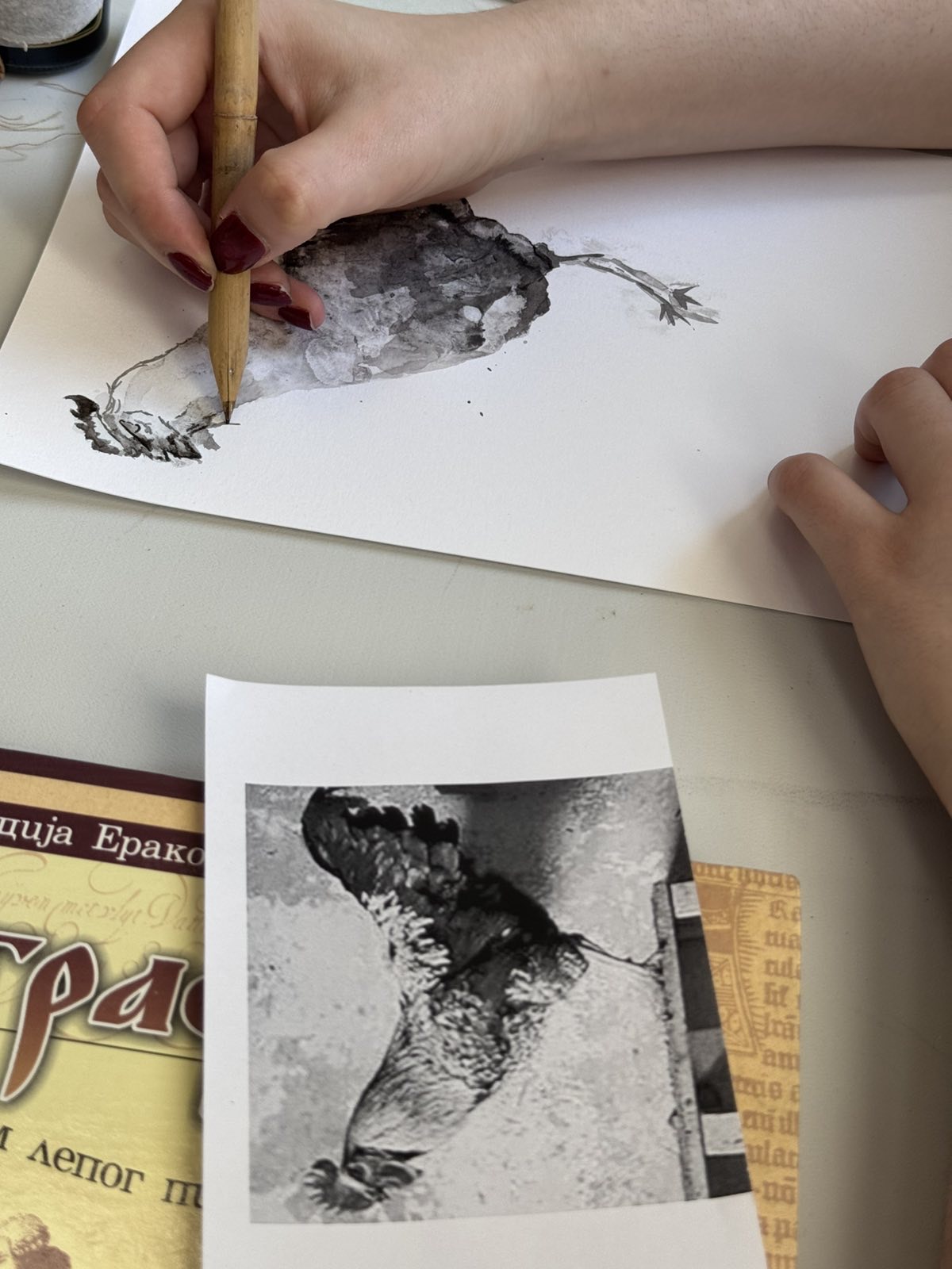 Na radionici smo oslikavali čestitke u obliku zeca koji je po tradicionalnim običajima simbol ponovnog rađanja. Radionica se sastojala iz nekoliko etapa, tako je deci pročitana pesmica Zečije uho od Desanke Maksimović, kroz razgovor smo saznali kako deca zamišljaju zeca u toku Uskršnjeg jutra i koja je važnost ovog hrišćanskog praznika.