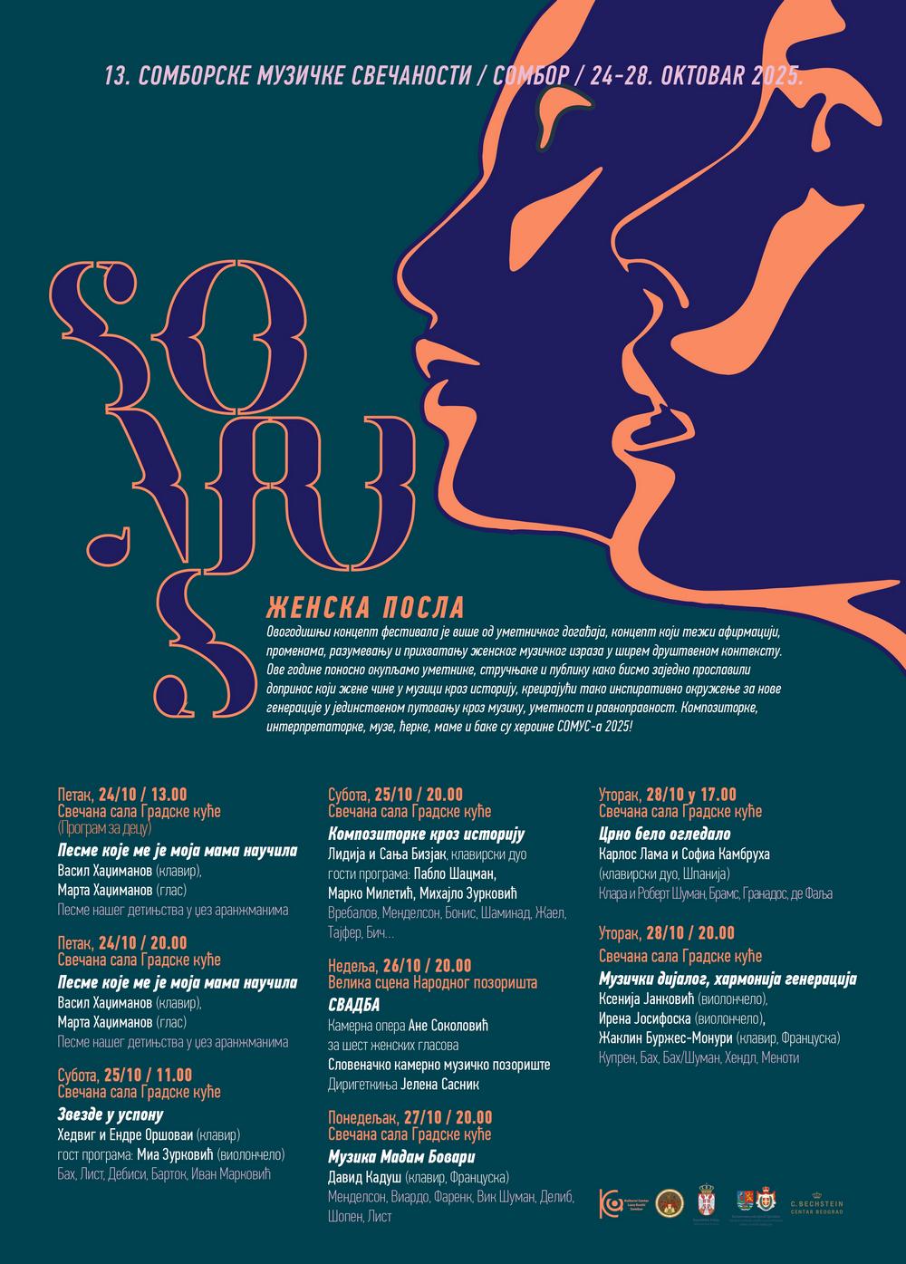 Poštovani, SOMUS 2025 – Festival posvećen ženskom muzičkom izrazu Od 24. do 28. oktobra 2025. godine, Sombor će ponovo postati centar muzičke umetnosti i kulturnog